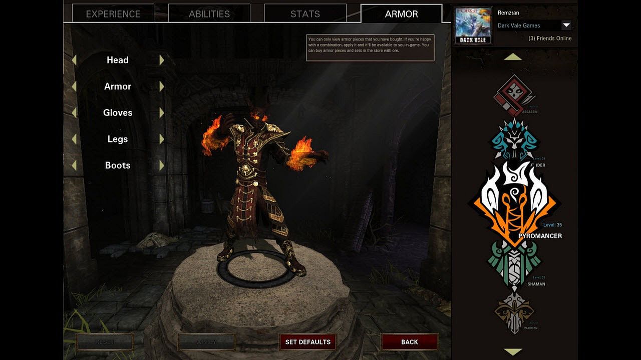 The Vaklndr forged the Shadow Armor deep in the darkness of the Devourer’s dwelling. It is stained with the same shadows the Devourer casts. The armor’s outside is lined with coal from the mines of Mitgarde, found deep within the earth, providing extra protection against attacks. In addition to carrying the shadows of its origins, this armor is perfect camouflage for stealth attacks at night or slipping in and out of rocky terrain during the daytime.