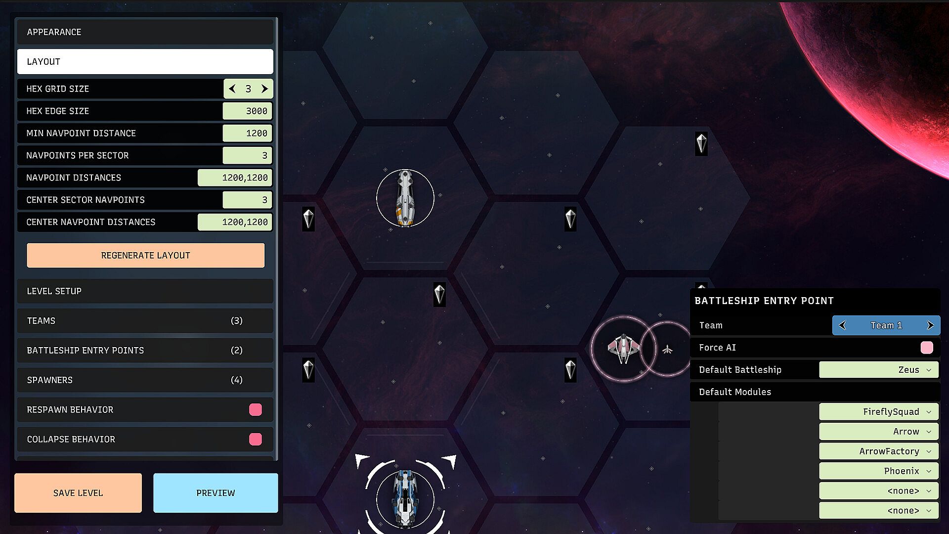 • Fully Customizable Levels, with built-in Level Editor that allows you to set combat pacing, win conditions, background visuals, and countless other parameters.