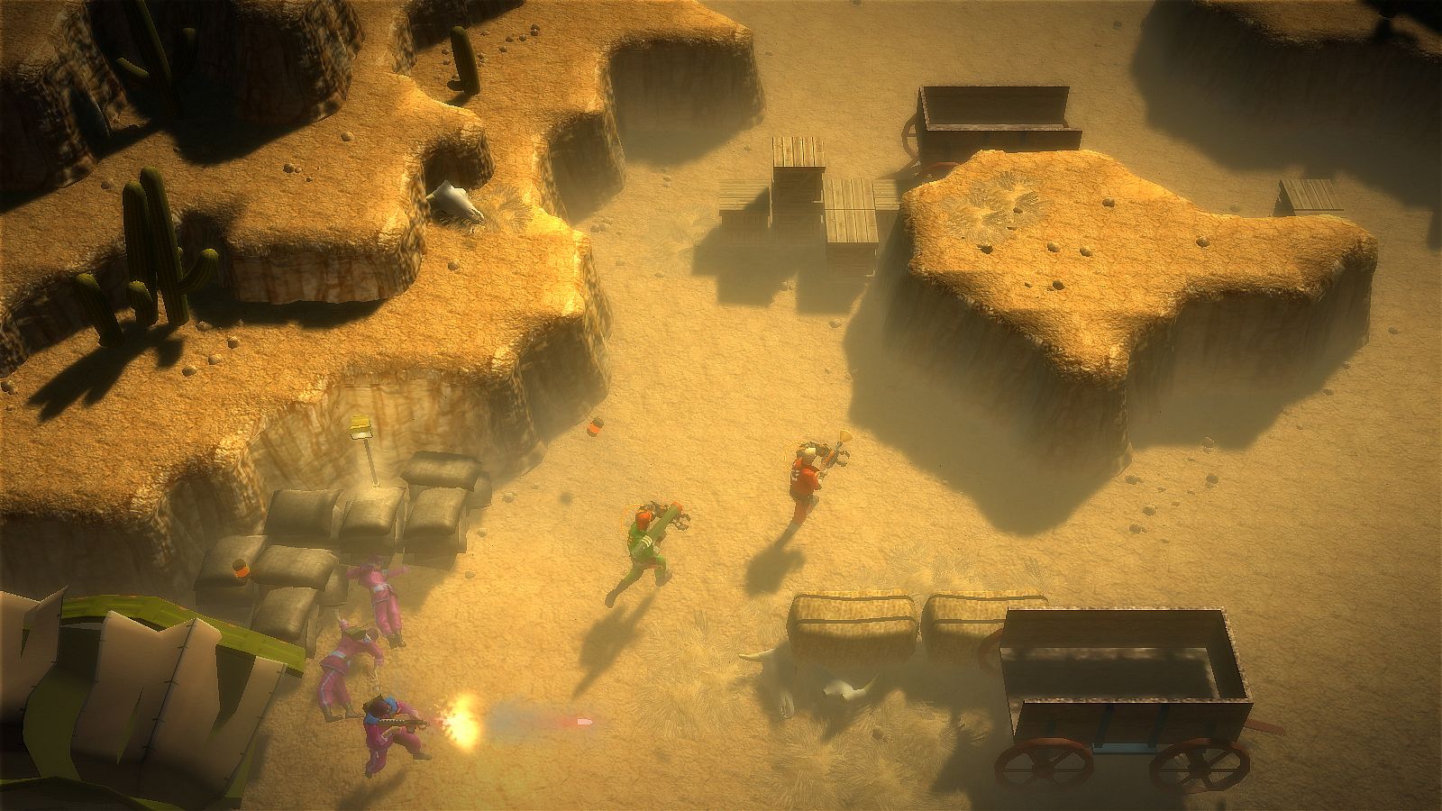 • Multiplayer – up to 4 players can face off in a frantic melee of shooting and swinging!
