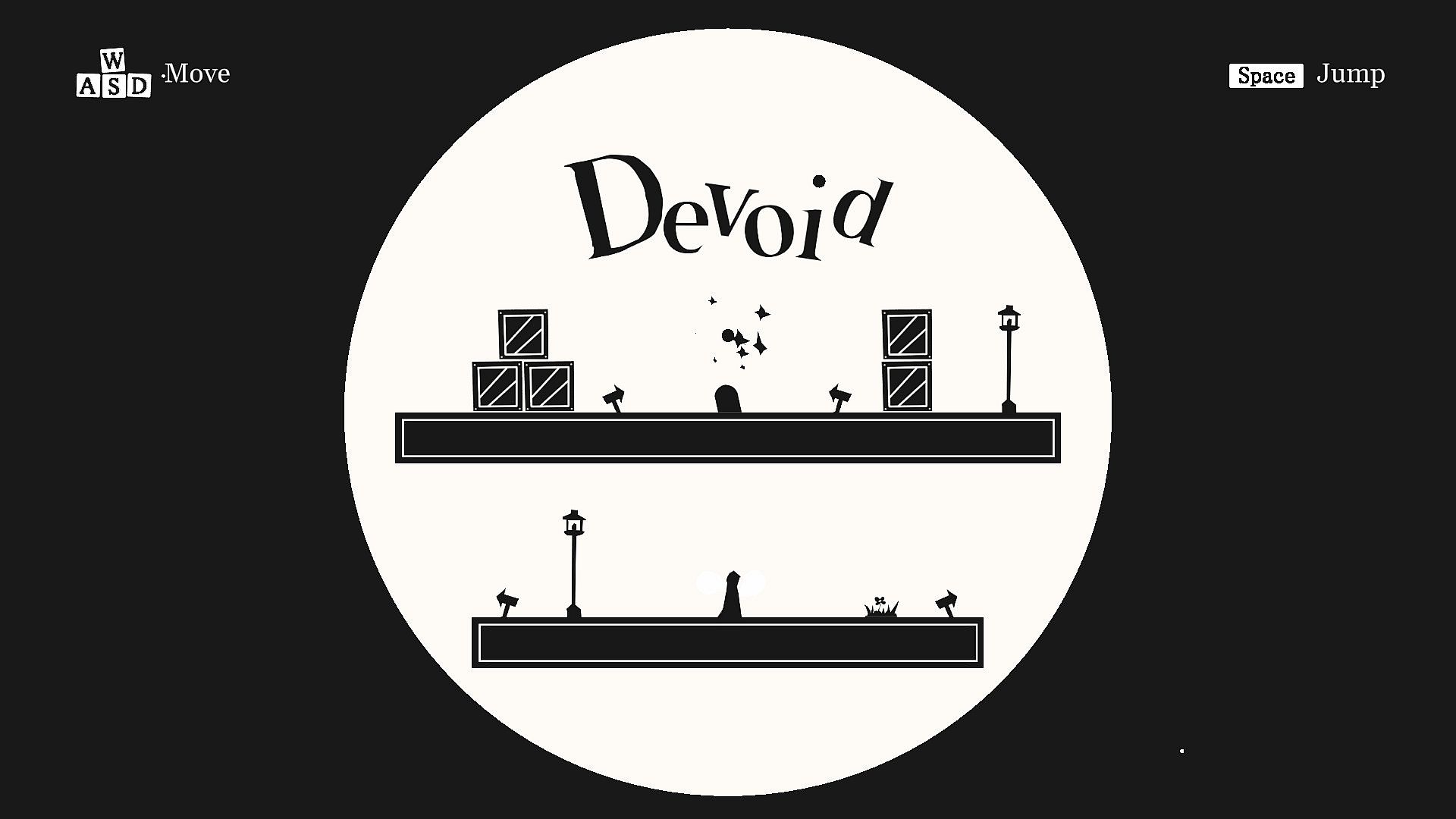 - Devoid, a 2D puzzle platformer idk how to describe it like in the white space you move normally but in the black space you go swoosh?