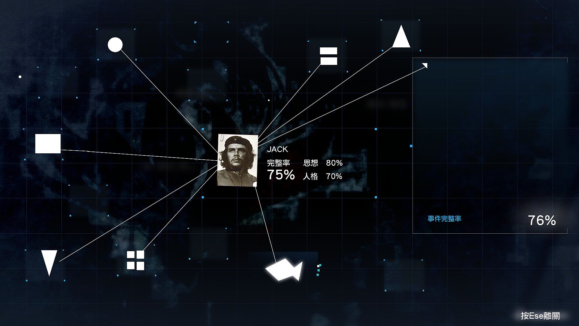 "Reasoning and solving puzzles" will post clues collected by players through exploration on the clue wall. Players can connect relevant clues. Establish a mental model of task goals. Analyze the targetās "personality" and "thought" through clues. As long as the mental model is correct, the player can choose to add different new ideas to the target. For example, turning Christians into Buddhists and liberals into conservatives influences the development of the plot.
