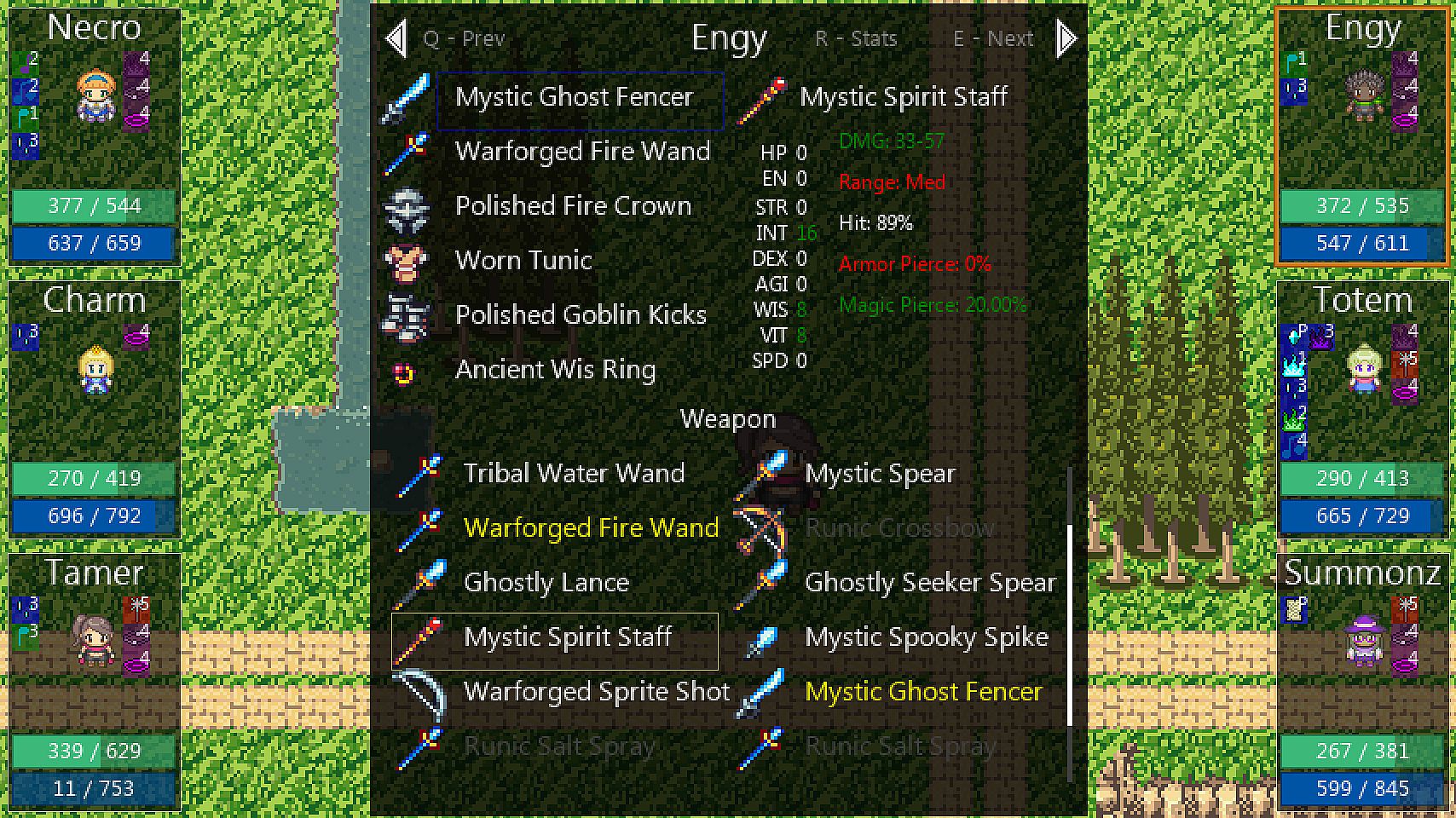 - Procedurally generated items from chests and monsters, with random weightings towards different stats along with random bonuses.