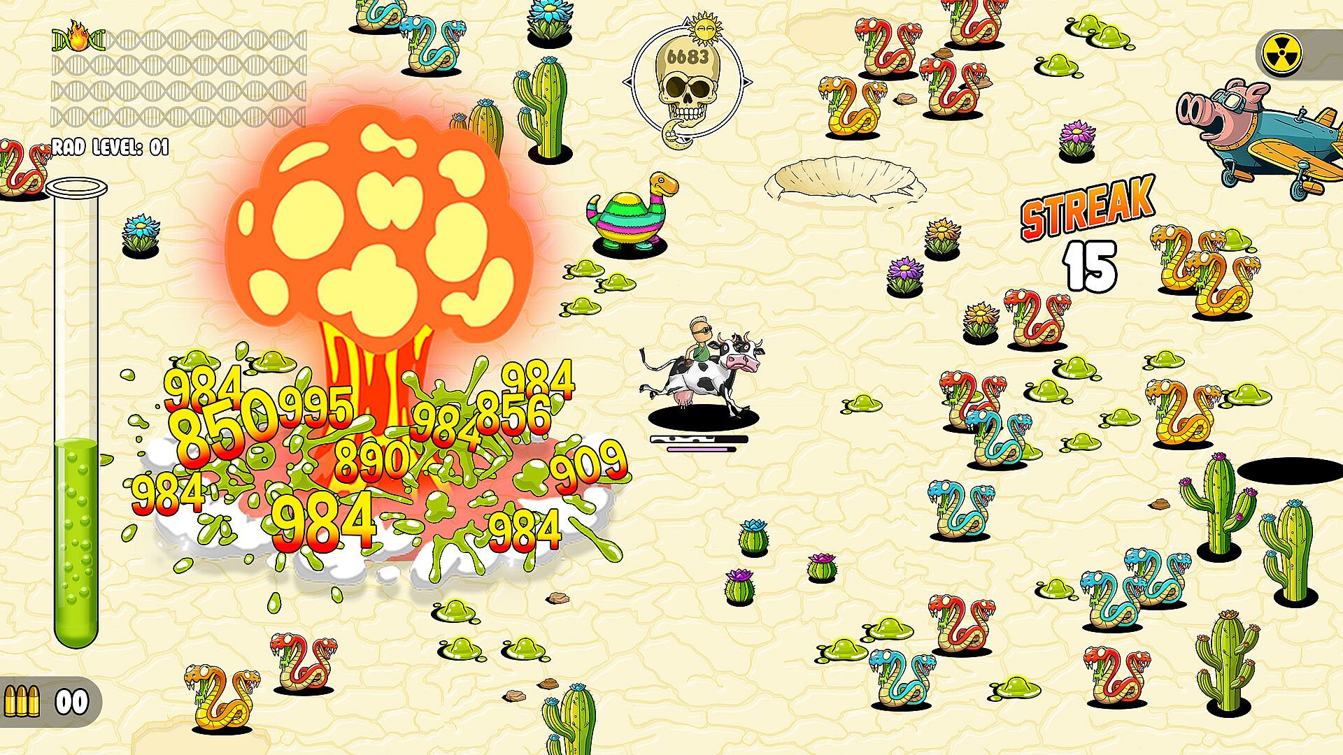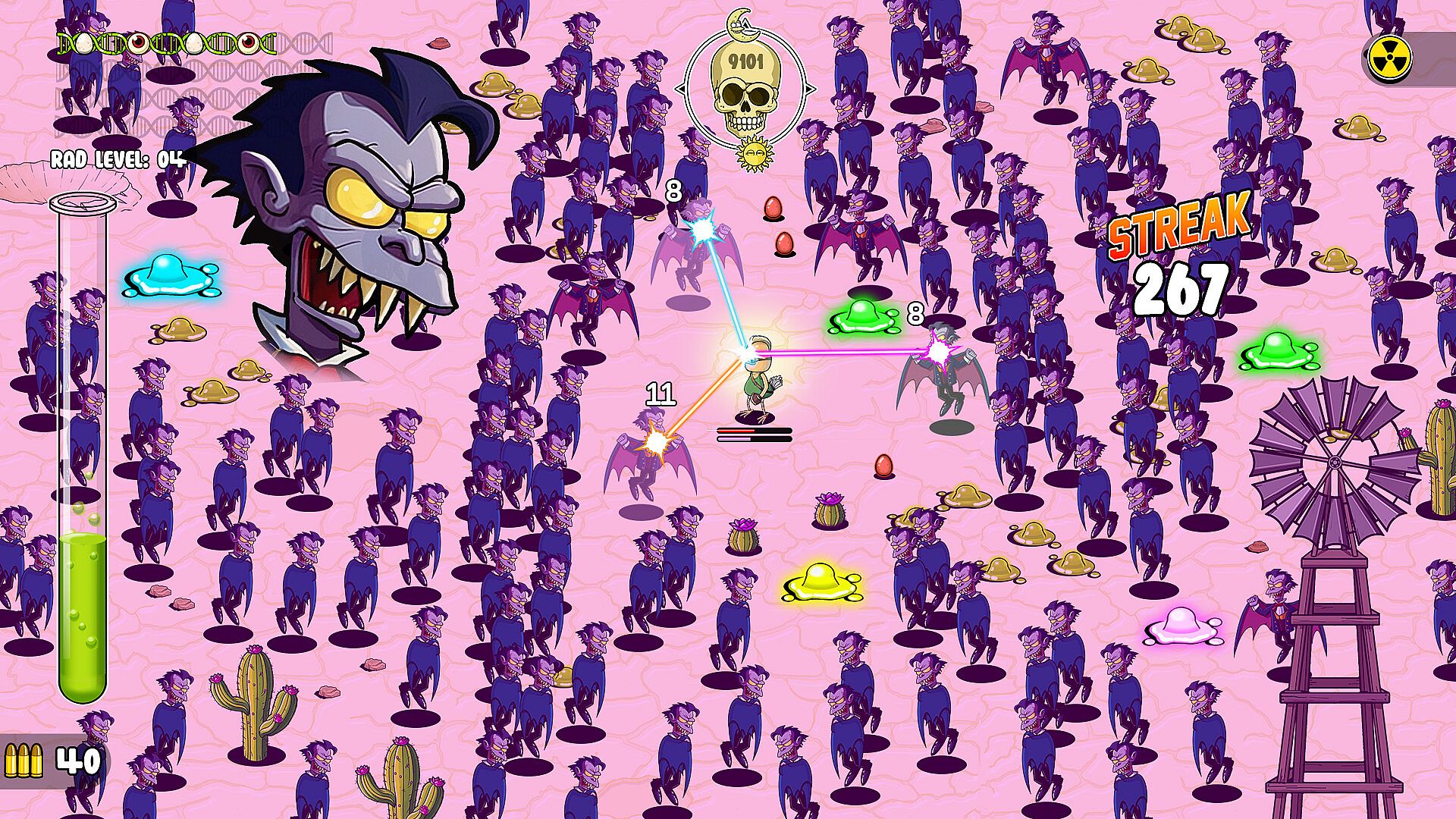 Destroy screen-filling hordes of mutated wildlife, absorb their radioactive guts and become an overpowered freak of the wasteland!