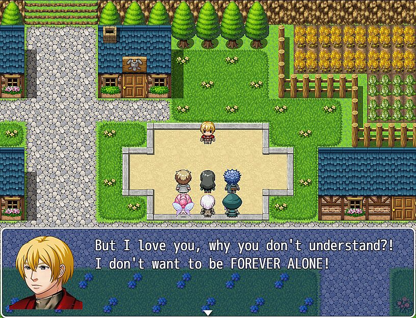 Harmony of the bravest is a videogame developed by RPG Maker MV. It uses all the standards of JRPG games, strongly influenced by the first three chapters of Final Fantasy, such as a turn battle system, limits, equipments, puzzles and pixilated explorations...