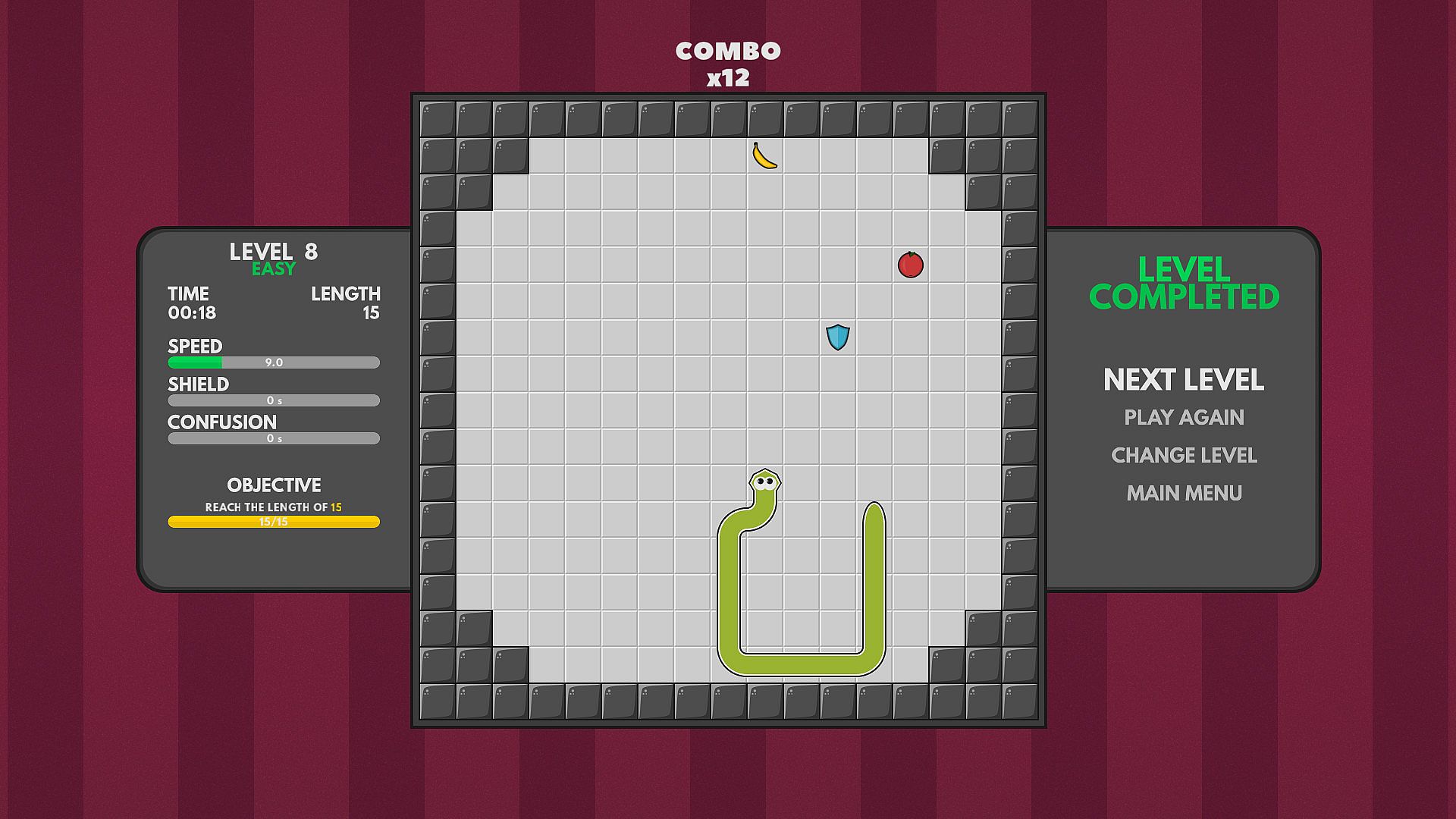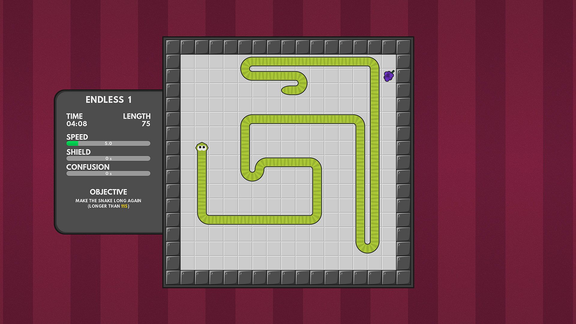 Master the fast-paced challenge of a classic snake game with just two buttons-one for left turns, one for right. Navigate arenas in three distinct modes: a campaign spanning 70 levels across three difficulty tiers, endless play in five arenas, and fruit hunt for targeted collection. Unlock elements to customize your snake's look, blending over 100,000 combinations through steady progress. This indie casual title draws in players who crave quick sessions packed with precision control and escalating difficulty. Short bursts suit mobile-like play on PC, while deep customization rewards repeat runs. Hardcore fans of retro snake variants find endless replay value here.