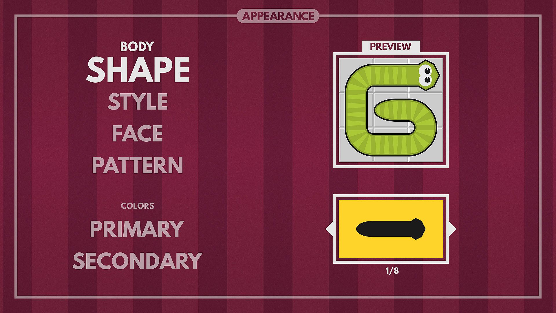 Play, unlock new elements and customize your snake. There are over 100,000 possible combinations.