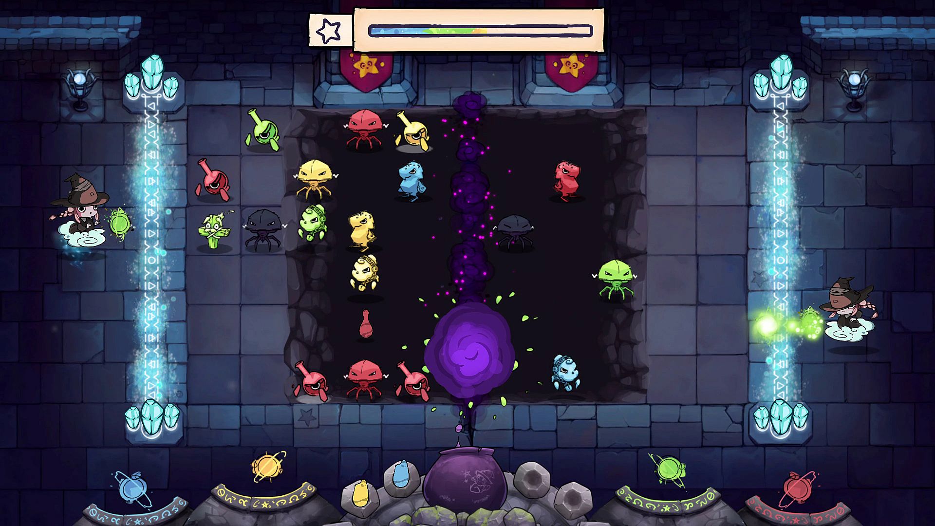 • Fill your cauldron with magic, coordinate with your partner and cast a special charm.