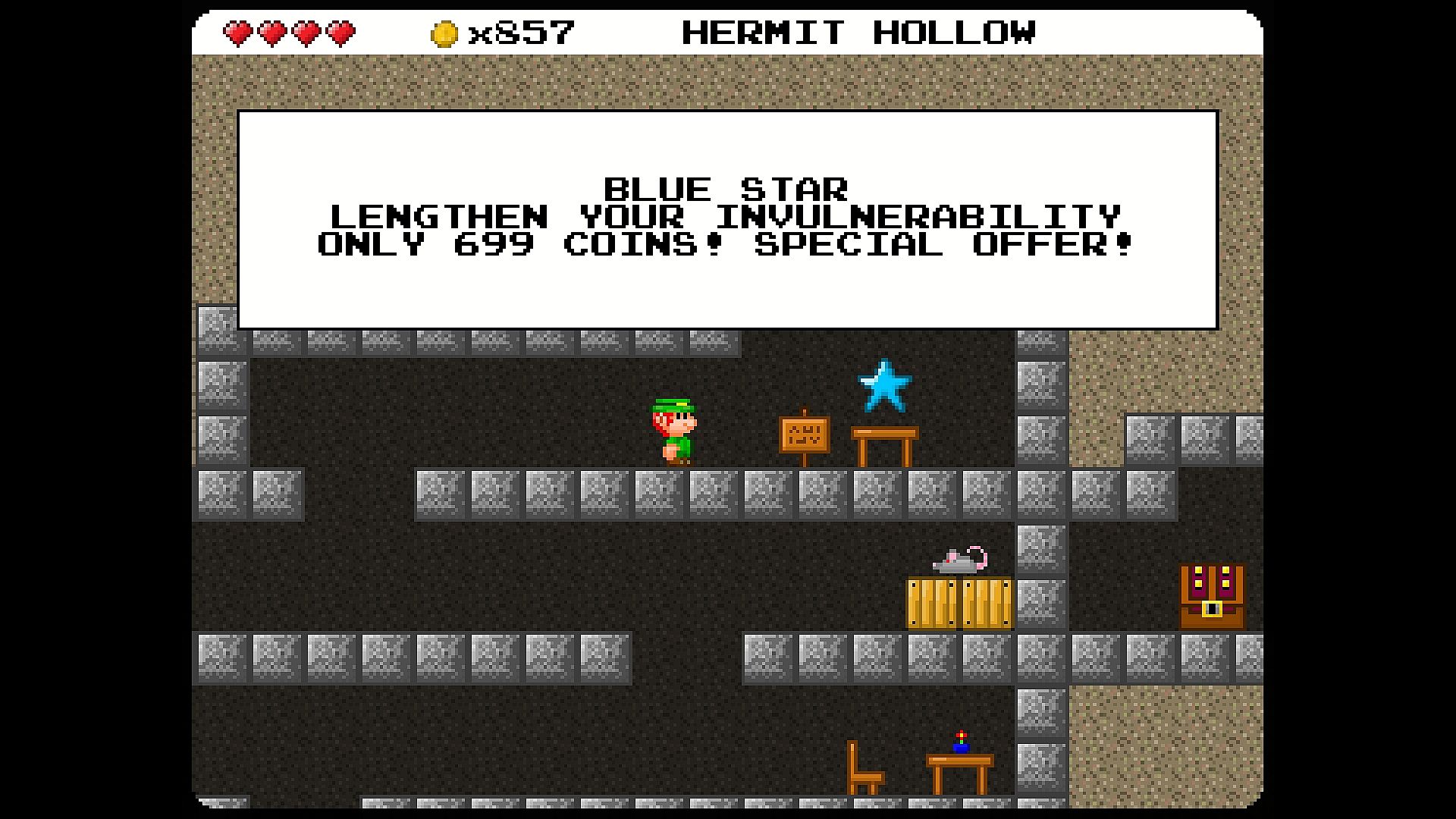 • Visit the crazy hermit's shopping mall in Hermit Hollow!