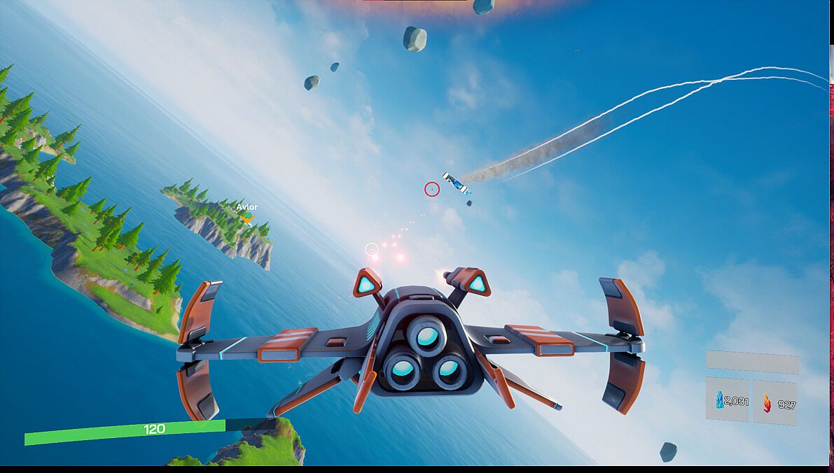 Players can buy items in the shop with the generated resources, these items include weapons, armor, jetpacks, defenses, ships and building parts.