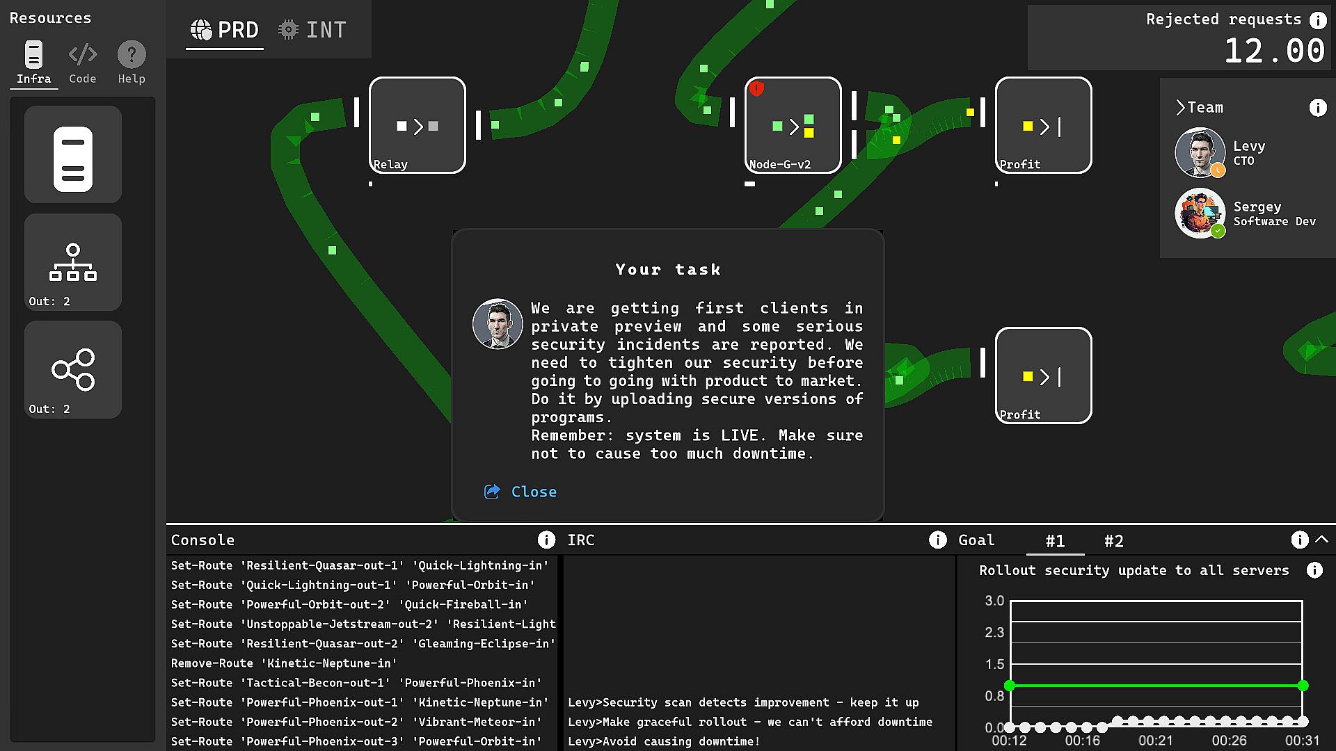 Step into the role of a Site Reliability Engineer in this simulation game. You manage software, security, and hardware to maintain smooth digital system operations. Analyze logs, spot bugs, and sharpen DevOps skills for reliable performance. Counter hacker attacks with strong security setups. Handle hardware upgrades and maintenance to boost efficiency. Advance your career across companies facing distinct challenges. IT enthusiasts gain hands-on training in realistic Site Reliability Engineering scenarios.