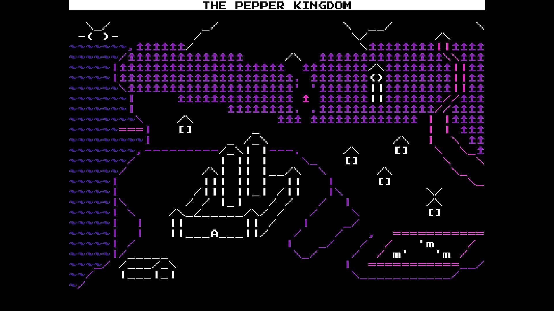 The Pepper Prince is a point-and-click adventure for everyone. Enjoy the whimsical characters and silly rhymes as you solve painless puzzles and let the minimalist ASCII art take your imagination on a relaxing journey through this sweet little kingdom.
