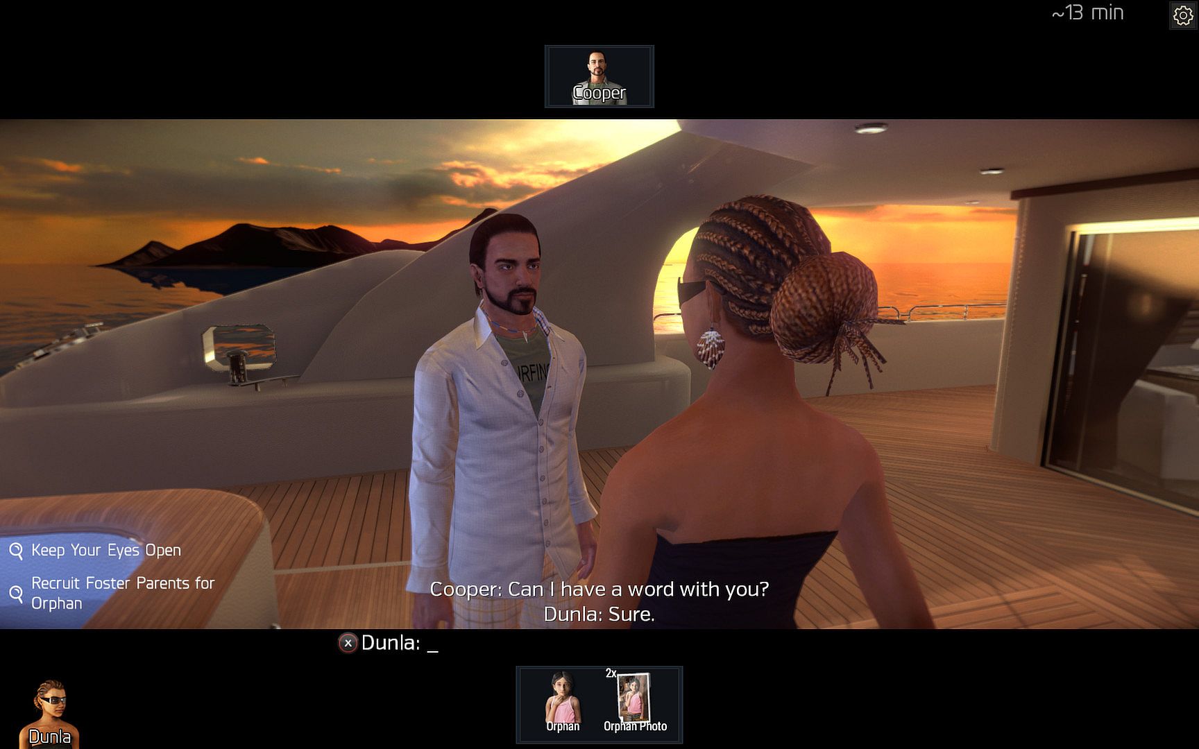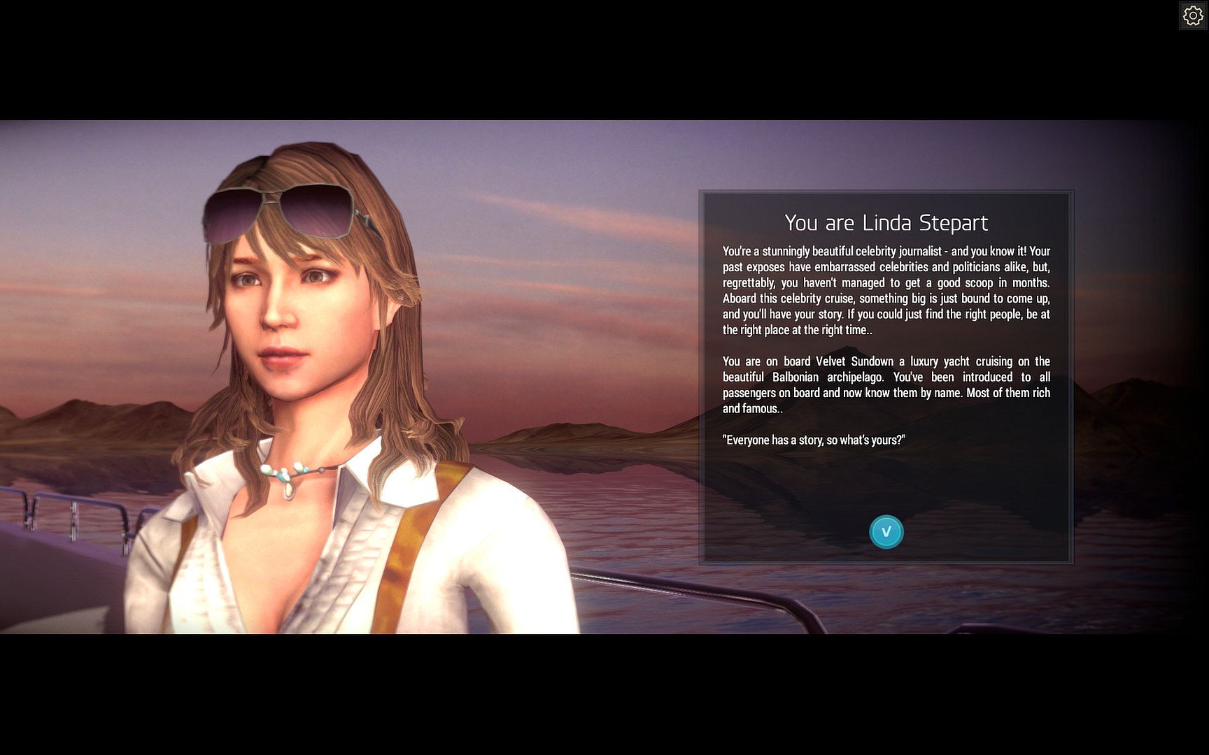 Velvet Sundown is a social multiplayer role-playing game, taking place on a luxury yacht cruising the waters of a fictitious Caribbean state of Balbonia. Embark on a journey full of conspiracies, trickery and secrets where you can never tell a friend from foe.