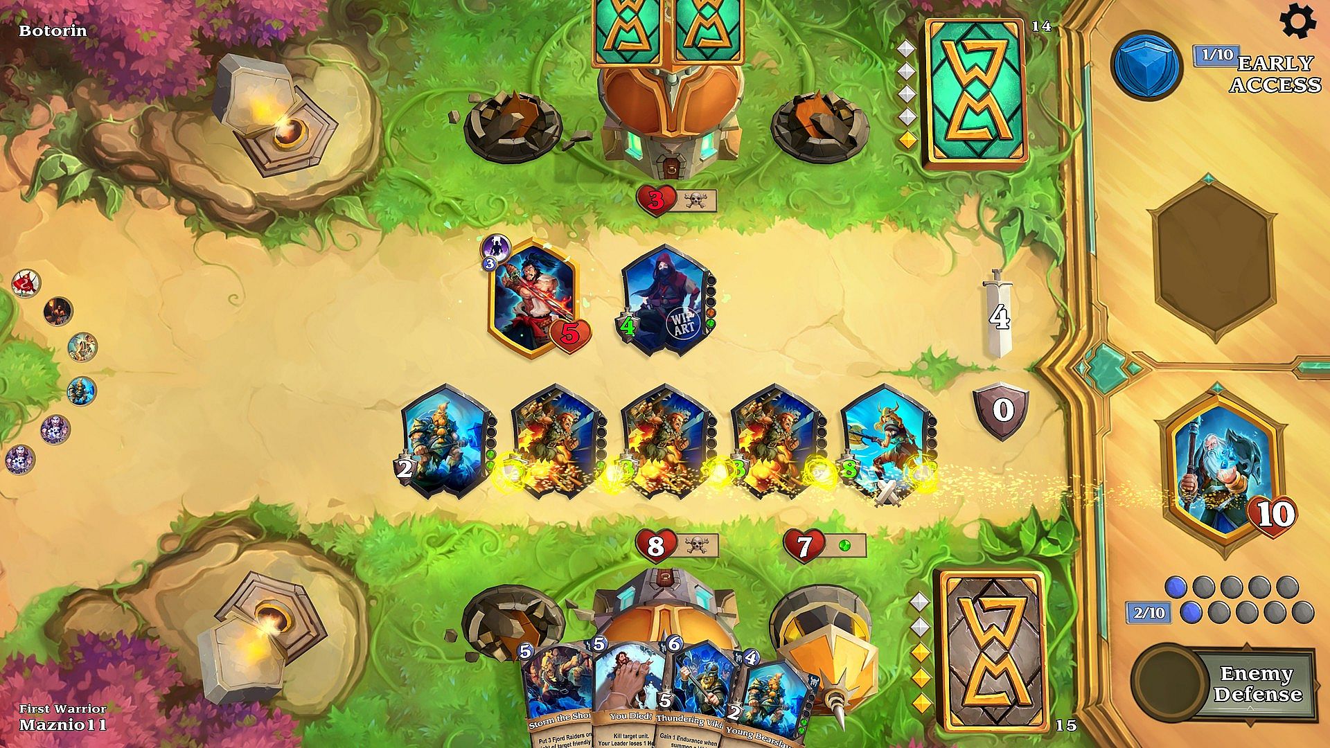 In World of Myths, units do not attack each other. Instead, they attack and defend as a group. Oh, and the best part - instead of health points, they have Endurance, representing the number of battles they can participate in. - Hand in Hand with the Gods