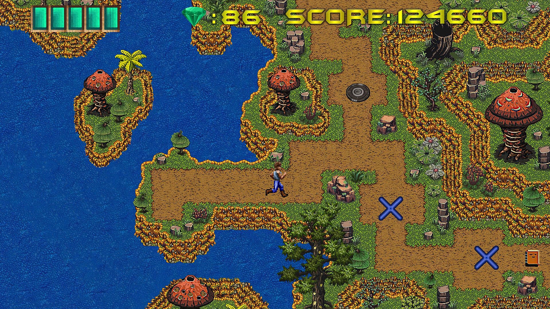 Xargon Remake Ep.2 is a run and gun 2d action platformer where the player advances through a game map by completing levels. Each level has its unique nonlinear layout, where the player must explore and find door keys and artifacts for progression, as well as new enemies, item pickups and different power-ups.